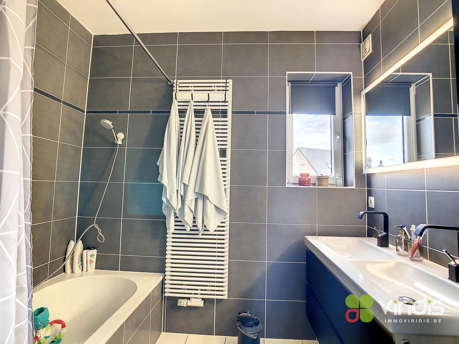 Il offre: hall d'entrée comprenant une salle à manger avec cuisine américaine de 35 m², un séjour avec coin bureau de 32 m², 4 chambres, salle de bain, salle de douche, 2 WC, 2 terrasses avec vue dégagée. Il comprend également 1 emplacement de parking privatif extérieur et 1 cave. PEB C - 254 kWh/m².an - numéro unique : 20221004011380. Loyer de 1.150€/mois – provision charges communes comprenant le chauffage : 250 €/mois