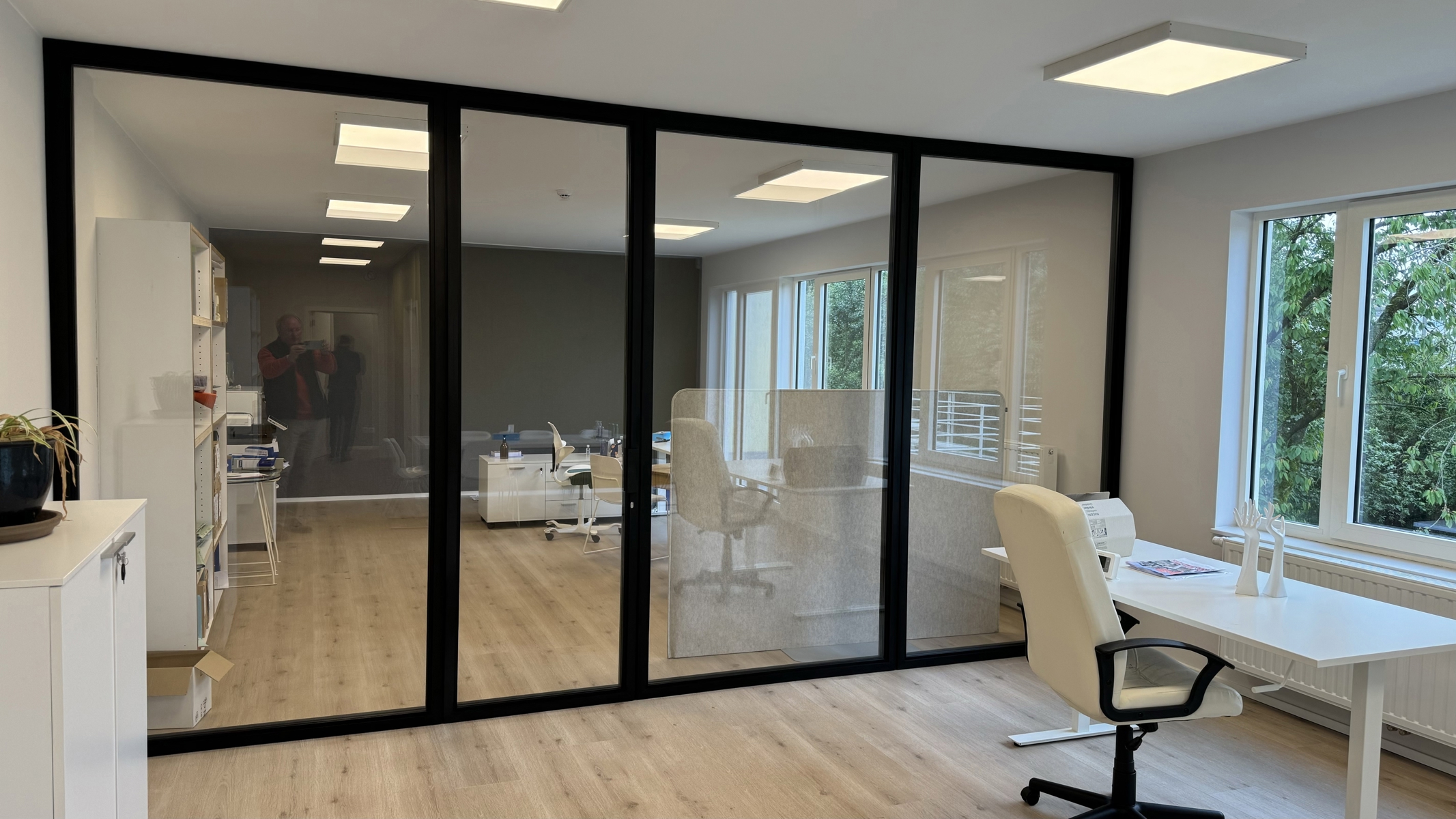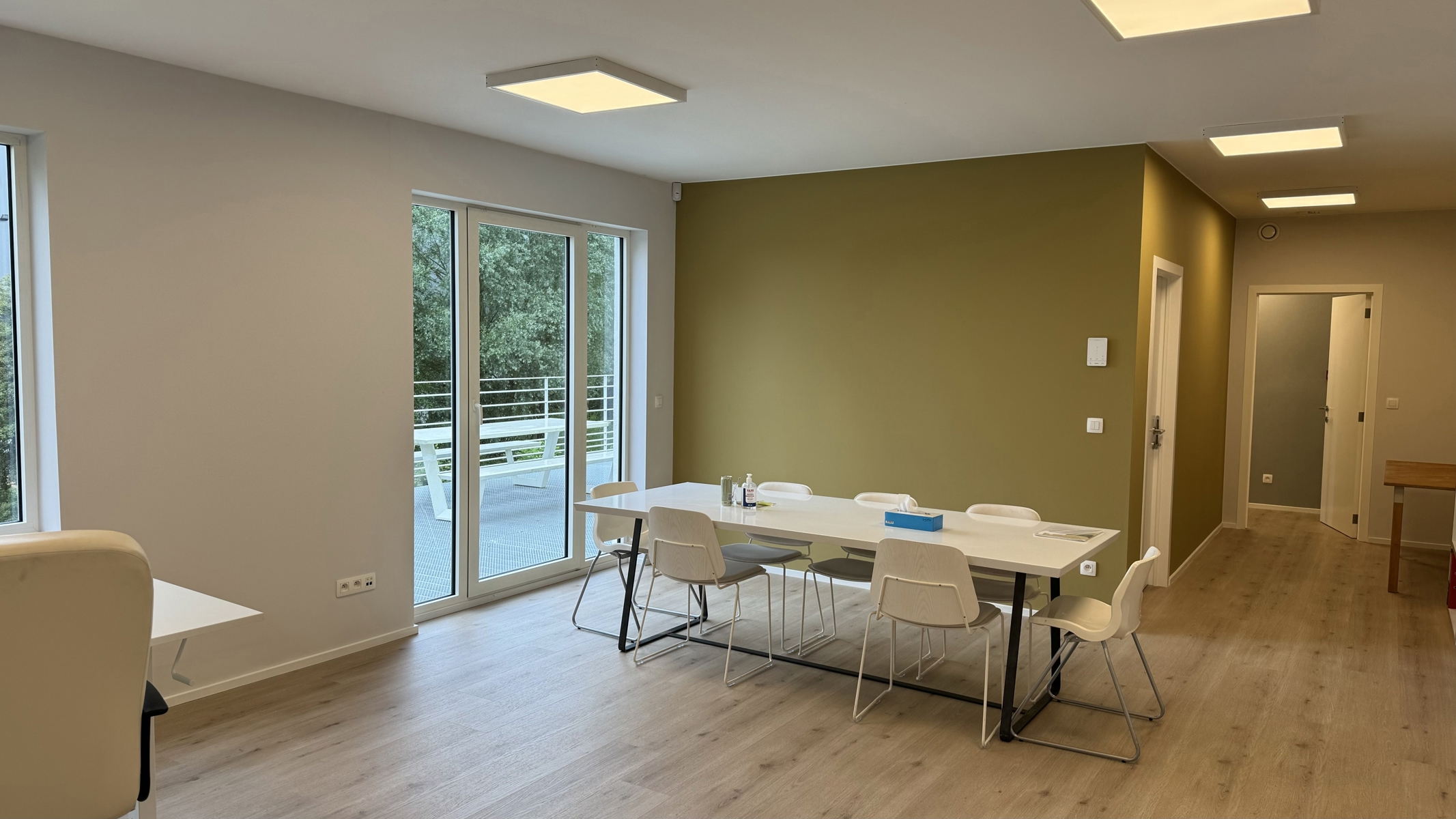 1 surface de bureaux comprenants 3 bureaux - Rares à Gembloux. Dans un immeuble très récent (bureaux, entrepôt...), VIRIDIS est heureuse de vous proposer une surface de bureaux modulable sise au 1er étage d'un espace de co-working - Business Center. Cette surface de ± 90m2, très lumineuse et moderne peut accueillir 3 bureaux privatifs séparés par des vitres ou cloisons. Un espace meeting équipé, une grande cuisine partagée, alarme et WC viennent compléter l'offre. Une terrasse privative aux bureaux est également accessible. Parkings à l'extérieur. La location est proposée dans le cadre d'un contrat de services (chauffage, électricité, eau, internet rapide, nettoyage...). A titre indicatif, le loyer est proposé à €1100 (pour les ± 90m2) + charges forfaitaires mensuelles de €125/personne. Parking €55/mois/par parking. Espace entrepôt (prix suivant surface souhaitée). La location est proposée par bureau individuel (voir annonce par bureau) ou pour toute la surface. Contactez l'agence pour les modalités. Visites uniquement sur rendez-vous. Libre immédiatement ou sous maximum 15 jours. N'hésitez pas à nous contacter : VIRIDIS : 081 600 111 ou immoviridis.be