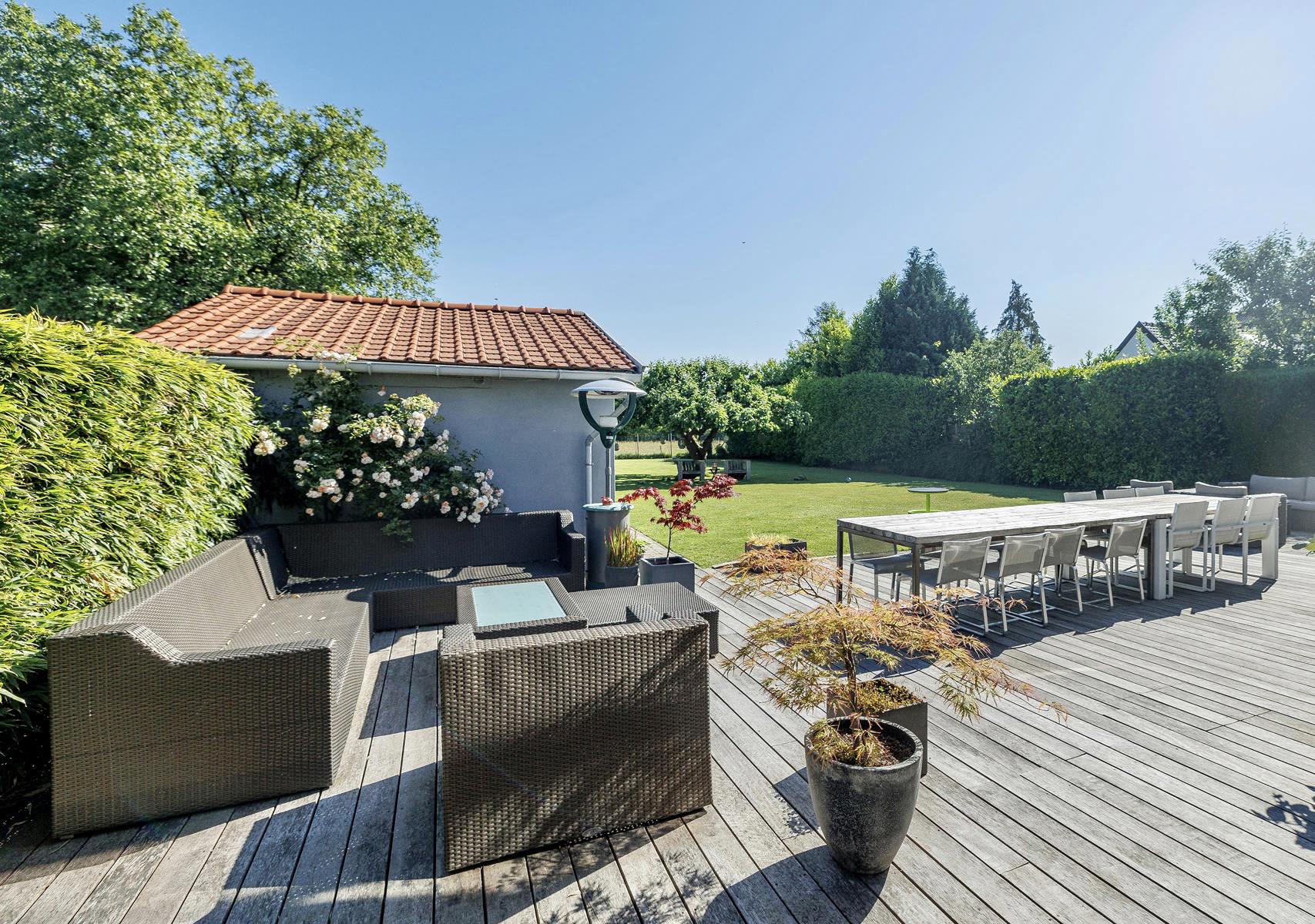 En extérieur: Vous profiterez d'un magnifique jardin privatif avec vue dégagée, de deux belles terrasses, de deux abris de jardin, de places de parking. La propriété est sécurisée par des portails et une alarme.